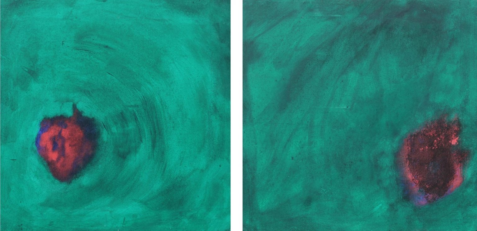 Lecciones de tinieblas. Mixta sobre papel. Dos piezas de 70 x 70 cm